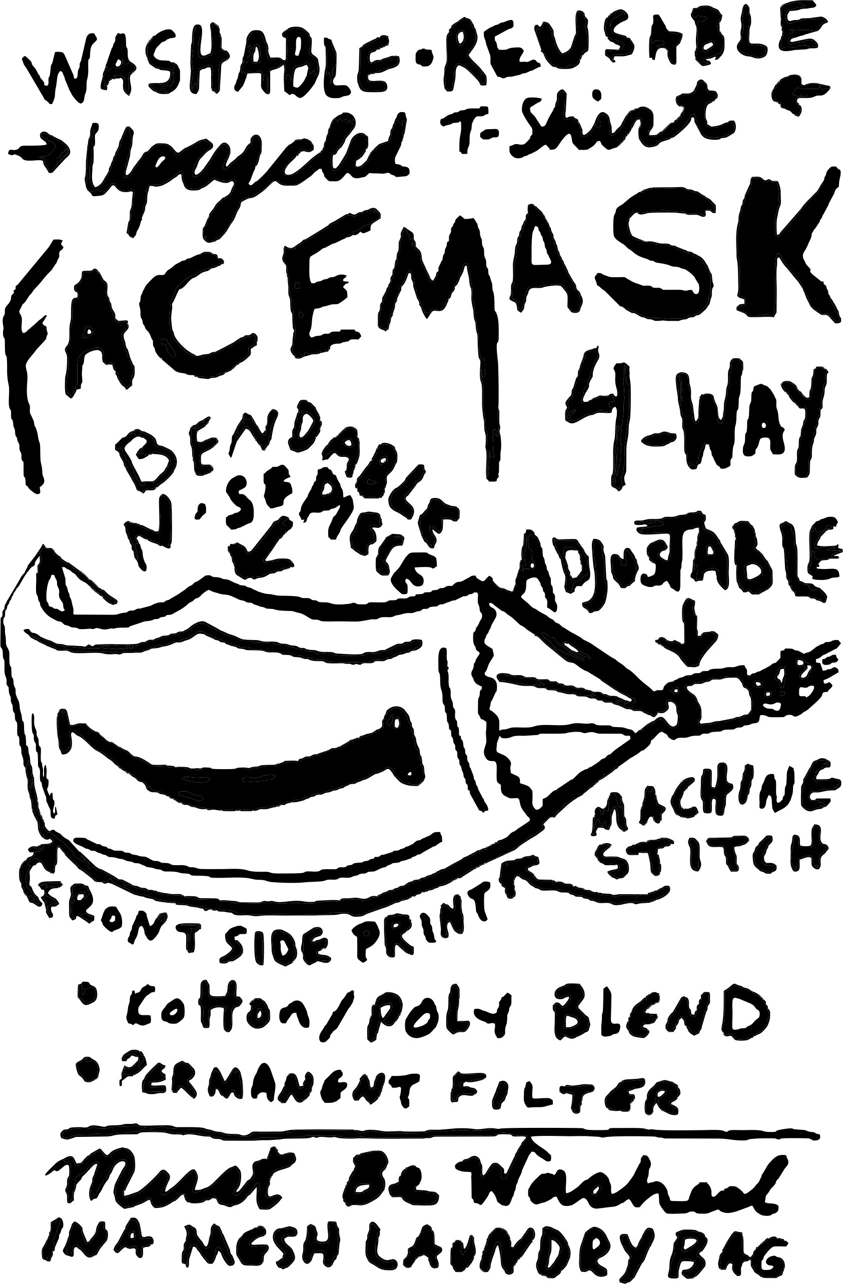 Upcycled T-shirt Washable Reusable Face Mask.  Machine washable in a mesh laundry bag.